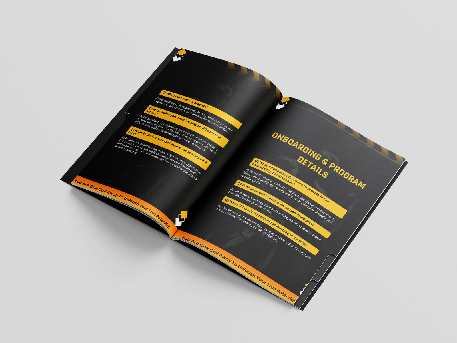 Pre-Call Guidelines & FAQs Booklet Design for Personal Training Studio | eBook Design Case Study